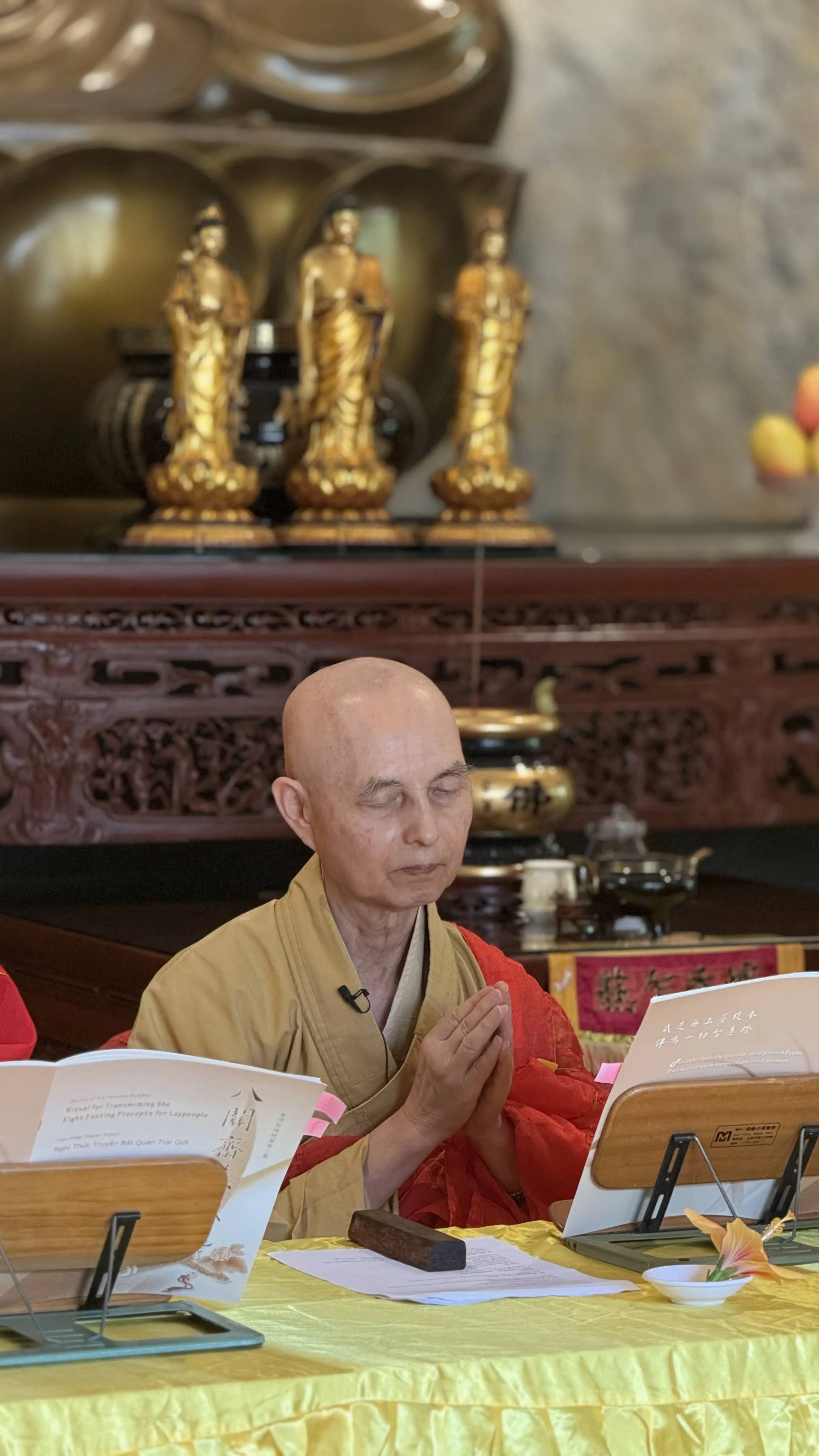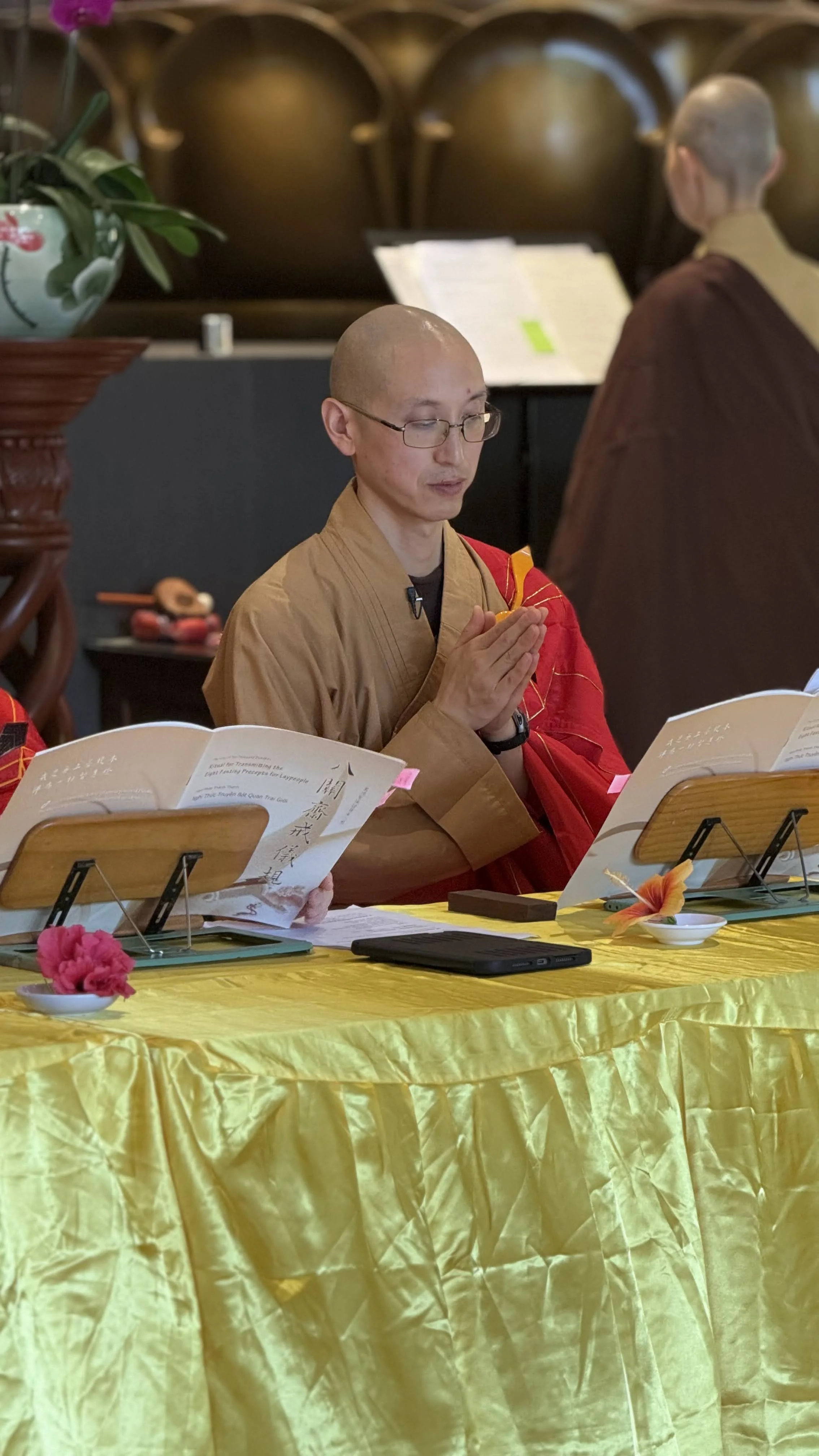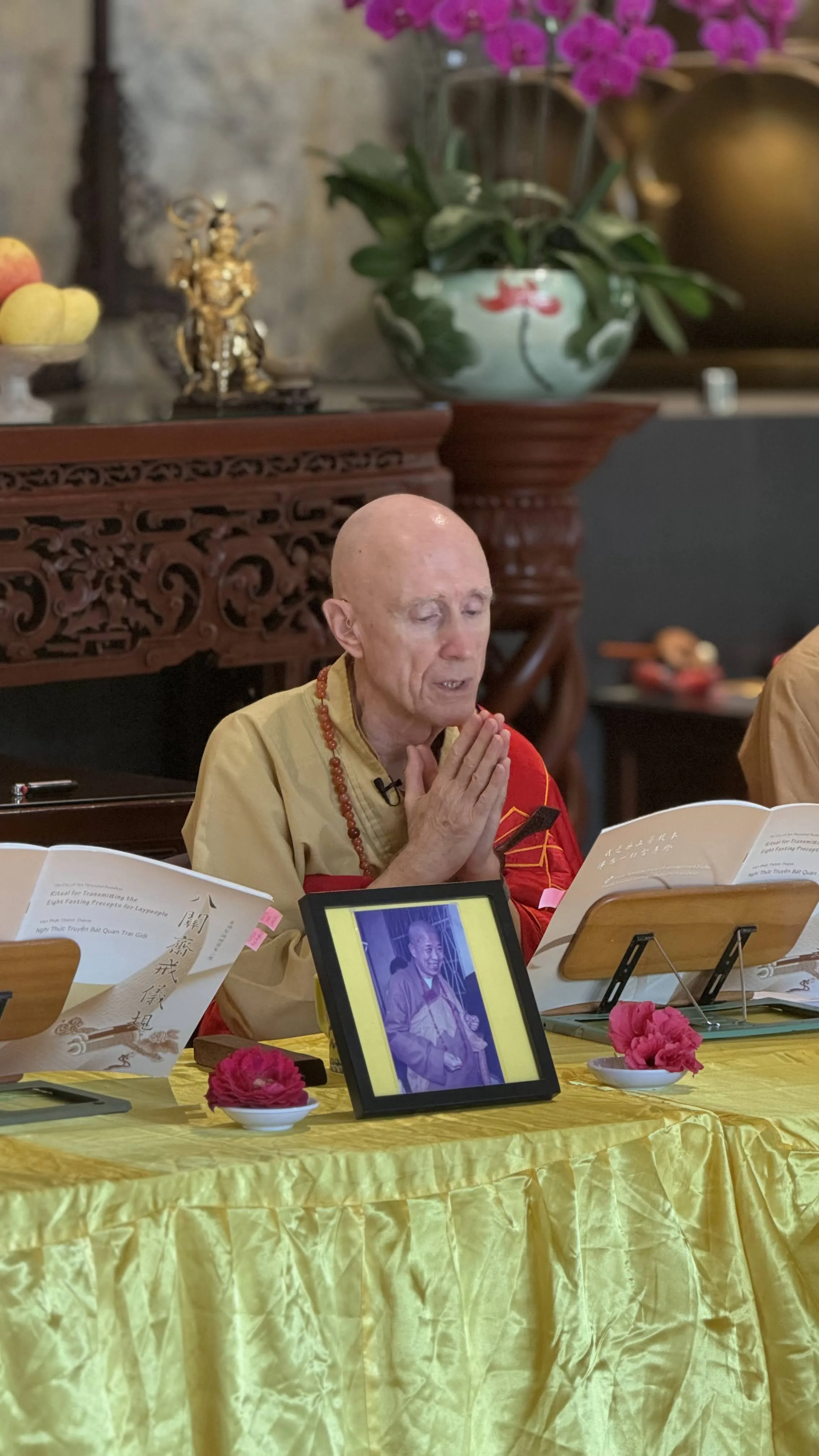 典禮前我其實沒太多時間細想。現在回想,這大概反而是好事。若讓我自己一直想下去,多半只會陷進胡思亂想,憑空製造一堆不必要的憂慮。那段時間寺院正忙著籌備接下來的活動,現場一片忙碌;雙手有事做,心也就比較不會亂跑。